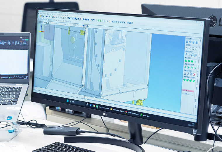 お客様の課題や要望をヒアリングし、機械構造・電気制御を含めた仕様設計をゼロから行います。