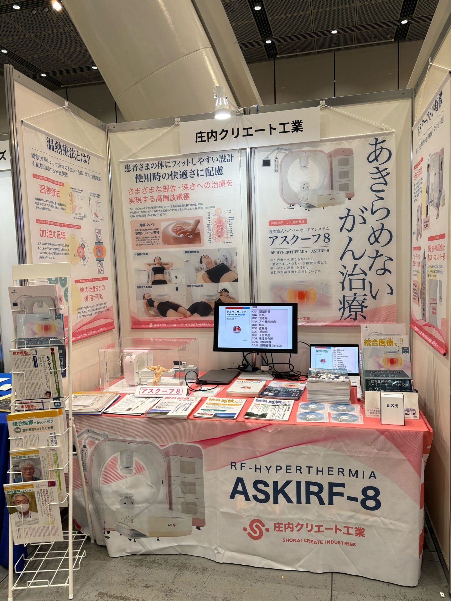 ブースでは、悪性腫瘍治療装置【アスクーフ8】の紹介を行い、
